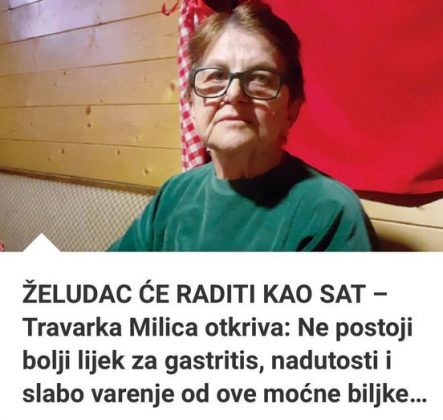 - Na kraju, kako pišu „Večernje novosti“, baka Milica često podseća ljude da stres ima ogroman uticaj na želudac. Nervozna creva, bolovi i grčevi često su posledica unutrašnje napetosti, a ne samo hrane. Zato savetuje lagane šetnje, dovoljno sna i trenutke tišine tokom dana. Njena poruka je jednostavna, ali snažna – telo uvek govori, samo treba znati da ga slušamo.